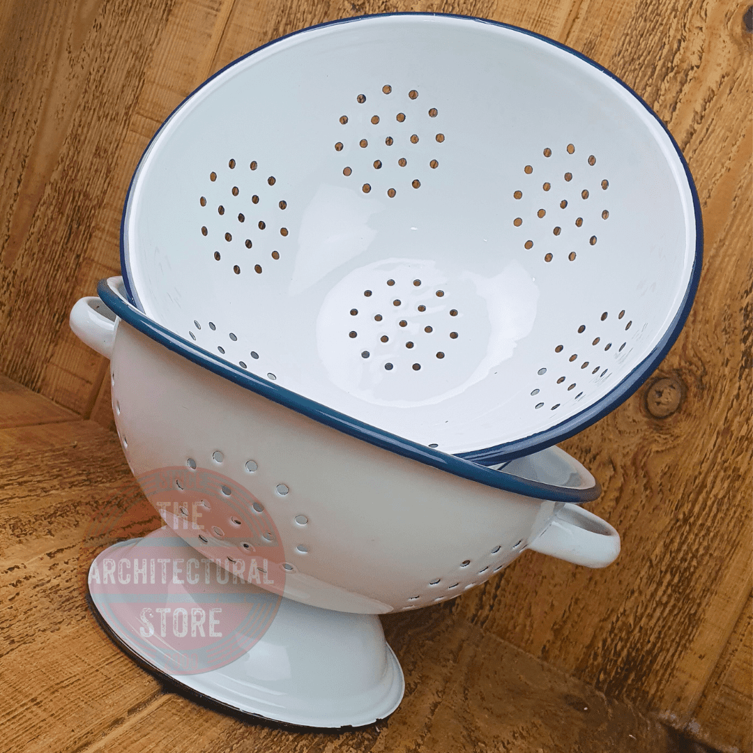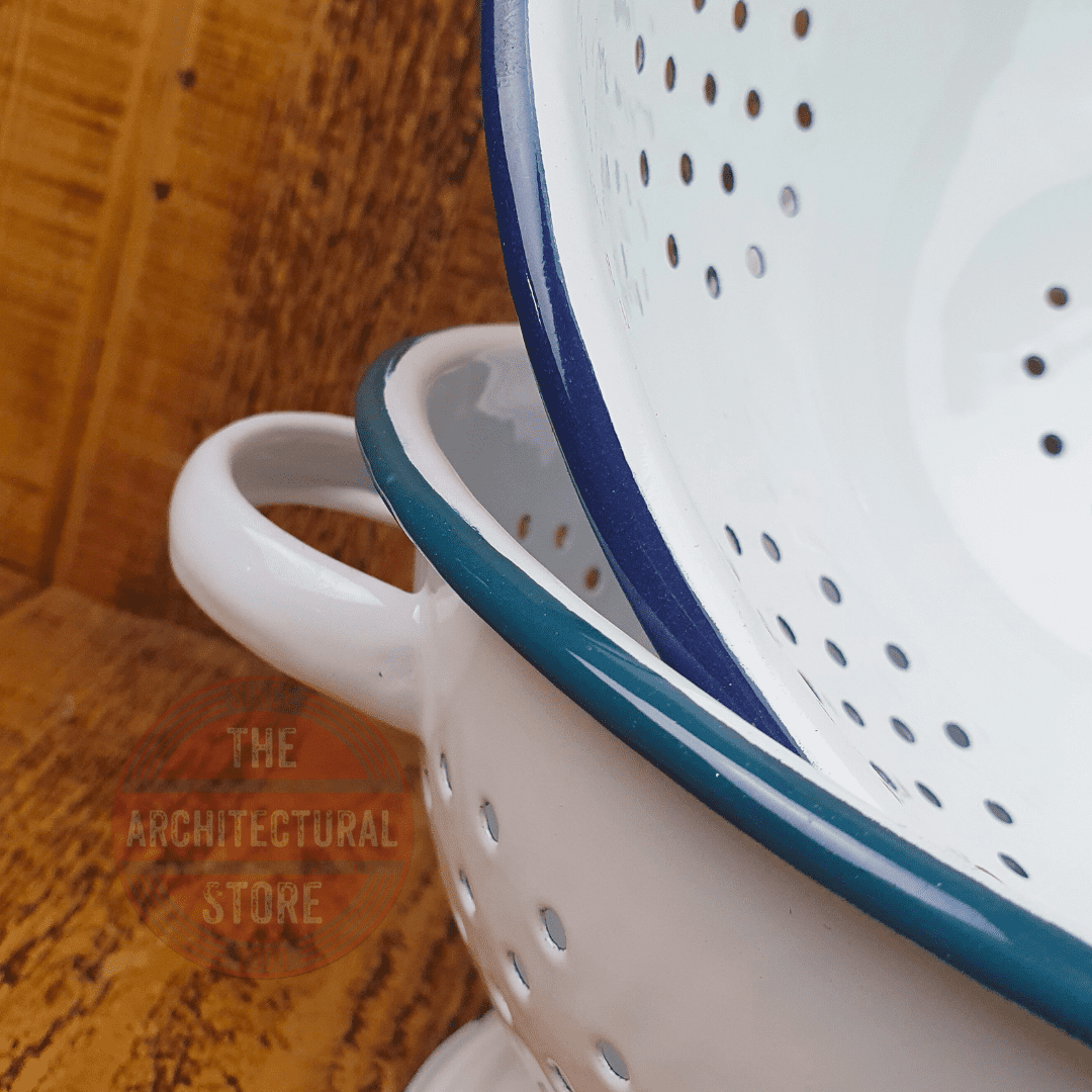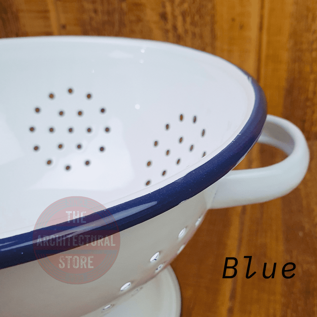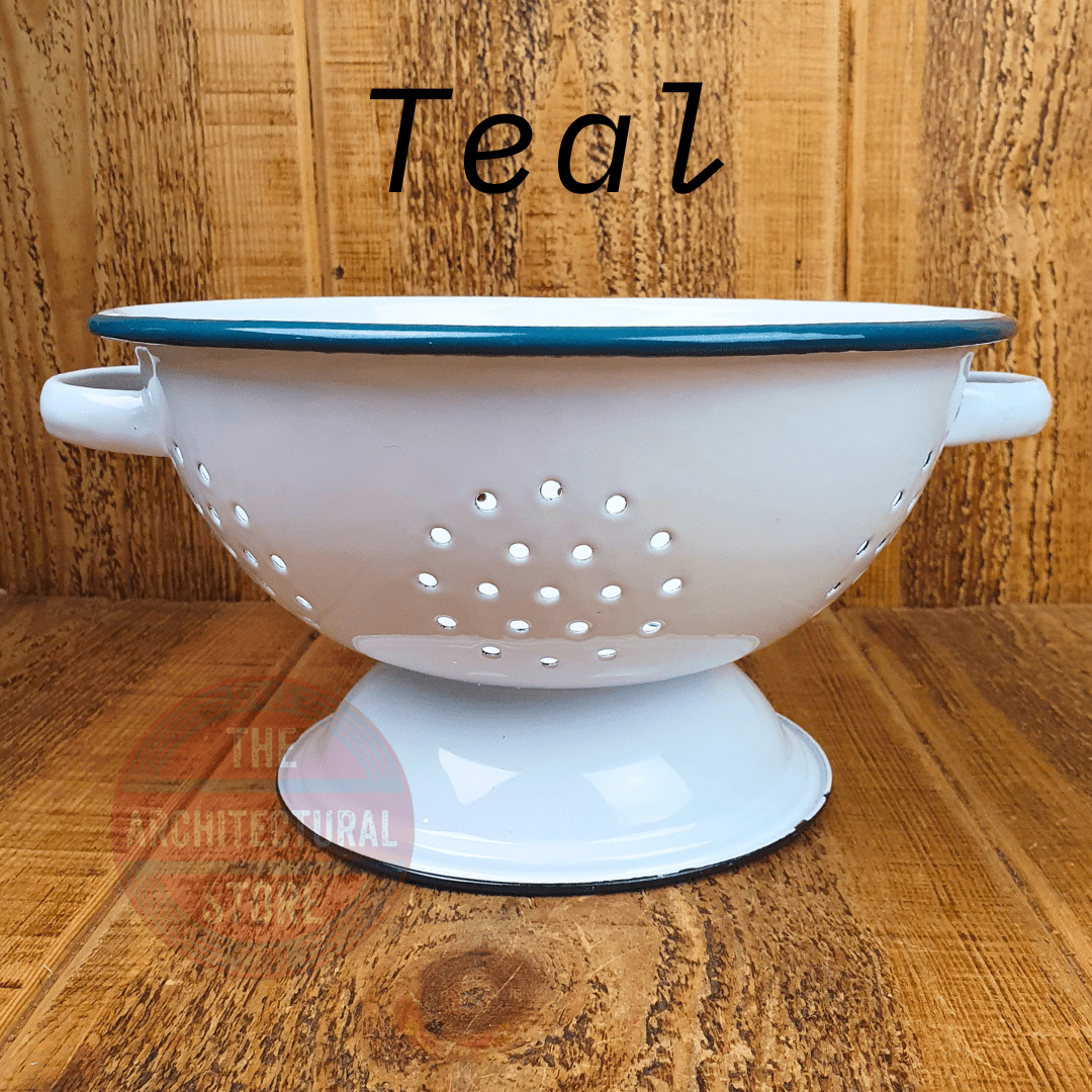 Home / Homewares / Kitchen Accessories / Enamelware / Enamel Colander Enamel Colander £16.00 View more images Colour: Blue Teal Add to your Wish List Description Enamel Colander Hand Wash Only Dimensions: H13.5 x W27 x D23.5cm 2 Colour Options