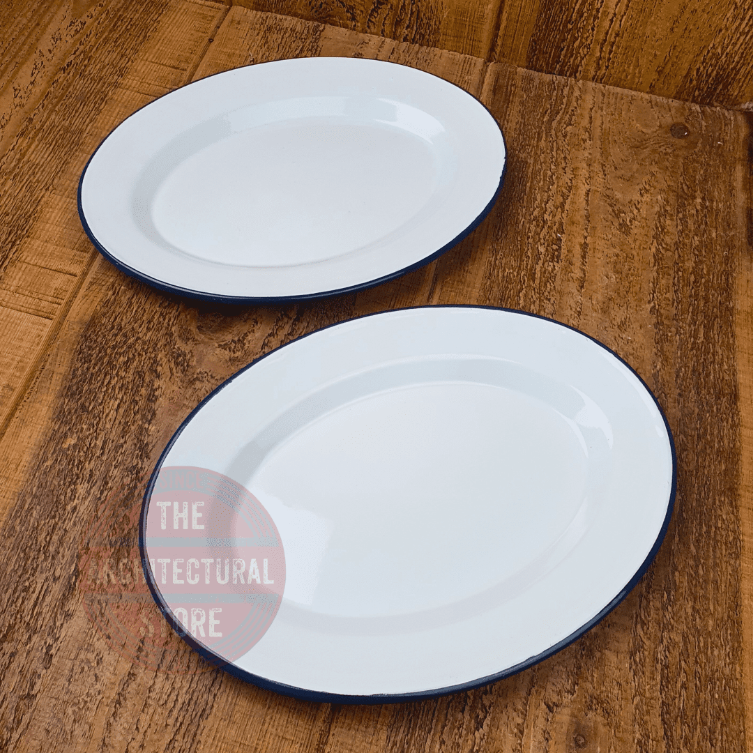 Home / Homewares / Kitchen Accessories / Enamelware / Enamel Serving Platter Enamel Serving Platter £12.00 Colour: Blue Teal Add to your Wish List Description Enamel Serving Platter Dimensions: H2.5 x W30.5 x D22.5cm Hand Wash Only Oven Safe Freezer Safe 2 Colour Options
